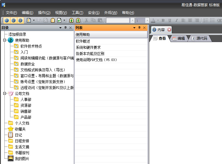 用户打开数据管家软件,目录默认的显示模式为文章显示模式,如左图: 当我们选择目录窗口的指定目录时,列表窗口会显示当前目录中包含的文章。