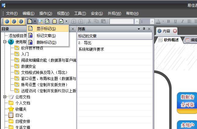 我们在列表窗口,选定指定文章后,打开右键菜单,执行“标记文章”,可以对当前文章进行标记。