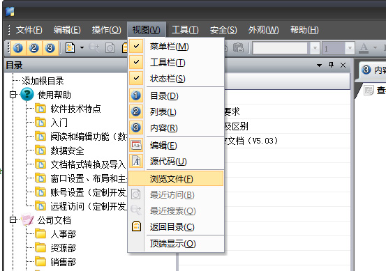 • 目录有两种浏览模式,即浏览文章模式和浏览文件模式