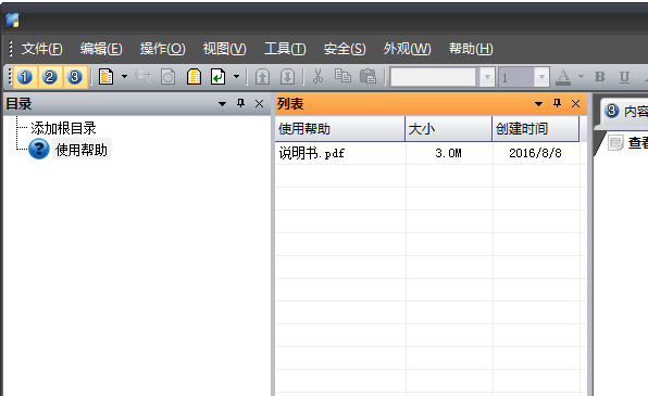 如左图,我们已经切换到了文件浏览模式。文件浏览模式只显示包含文件的目录,没有文件的目录不显示(用户可以通过使用编辑器的插入文件功能为文章添加文件)。 我们选择目录窗口指定的目录,列表窗口会相应的显示当前目录中包含的文件信息;用户可以在列表窗口另存或打开选定的文件。