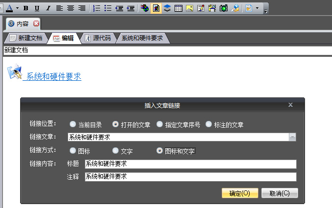 在默认标签("查看"标签)打开的文章,允许进入编辑状态,我们点击标签“编辑”,使文章进入编辑状态,可以进行各种编辑操作;若点击“源代码”标签,可以编辑或查看文章的Html源代码。 若要编辑在新标签打开或在新窗口打开的文章,我们只需选定要编辑的文章,然后执行主菜单->编辑->编辑当前文章,则当前文章会在默认标签中打开,并进入编辑状态。 文章编辑完成后需要点击内容窗口右上角的“保存修改”按钮,来保存文章。