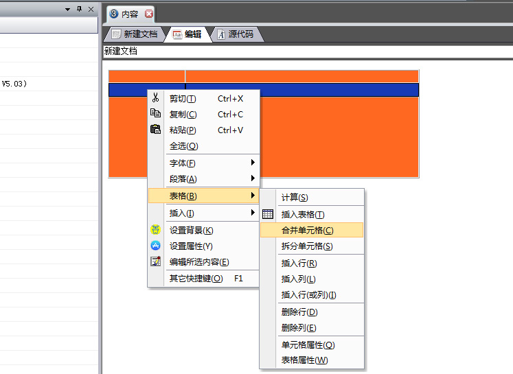 我们可以通过使用编辑标签右键菜单中的其它表格操作来对已经添加好的表格进行设置。