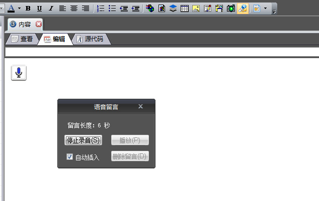 用户通过使用编辑标签右键菜单中的“语音留言”,可以在编辑器中插入录音,插入录音的前提是电脑必须已经接上麦克风。 插入后文章中会显示麦克风图标,点击图标会自动播放录音。