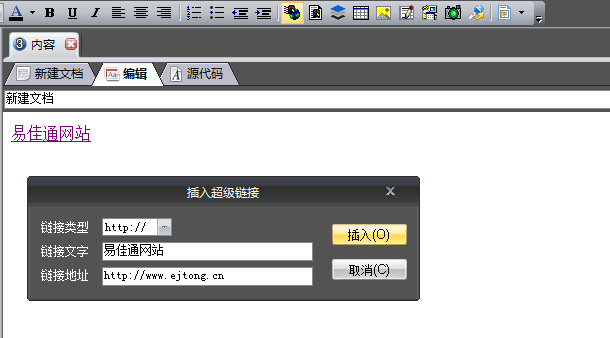 我们可以通过使用编辑标签右键菜单中的“插入超级链接”,在编辑器中插入超级链接,如图。