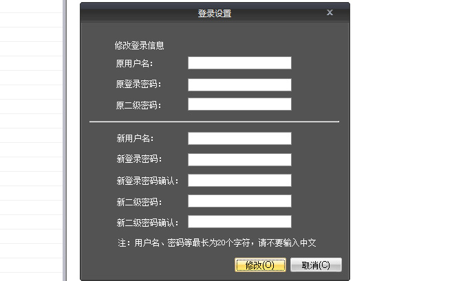 易佳通-数据管家软件实行双密码机制。密码用户账号登录、启动远程登录和其它一些普通常规操作;当进行修改账号信息、导入外部数据、软件冻结后解冻等核心操作时需要使用二级密码。