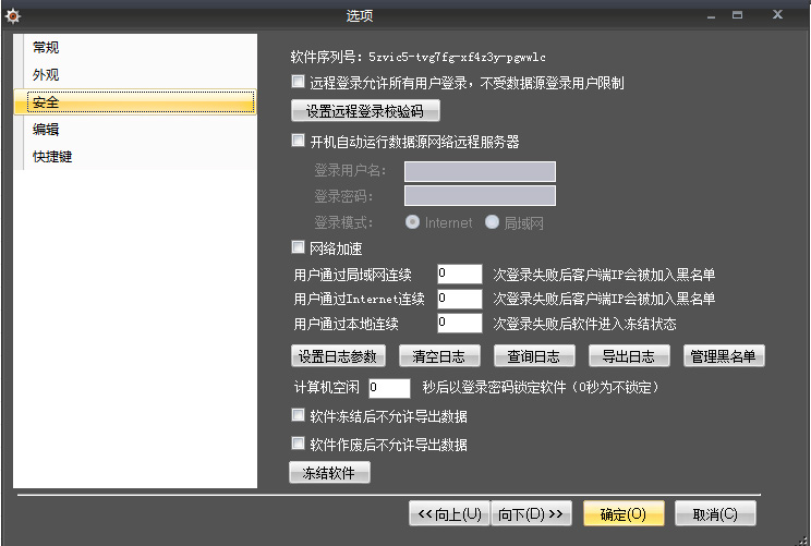 对于定制开发版数据管家软件,可以通过设置“软件冻结后不允许导出数据”或“软件作废后不允许导出数据”,来防止别人非法拷贝后导入自己的数据,即对方即使获得了自己的账号信息也无法从非法拷贝中导出数据。 除非对于至关重要的数据,目前不建议用户勾选这两项,以防用户由于误操作导致软件作废而无法导出数据。