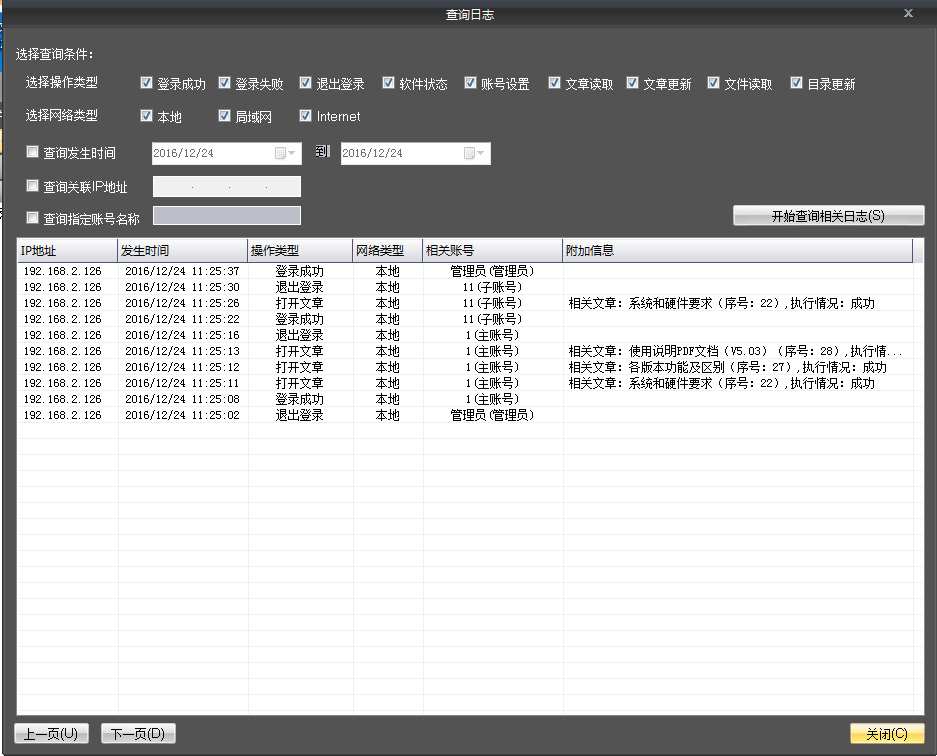 我们以管理员身份登录数据管家定制版,打开主菜单->工具->选项->安全,点击“查询日志”,可以查询指定范围内的日志记录信息,如左图。