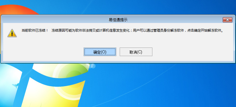 软件冻结后,需要以管理员身份解冻,并且要求软件所在电脑已经连入Internet(需要网络验证),需要输入管理员的用户名、密码和二级密码。 软件解冻后,软件恢复正常使用。 一个序列号的软件只能在一处使用,即若我们拷贝软件到其它位置,成功解冻后,原位置的软件会自动作废。